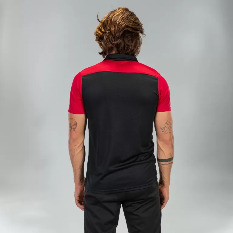 Polo shirt Comfortable 94% Polyester, 6% Cotton fabric with a colour contrasted design over neck, yoke and the sleeves. Multi-colour options available to match most Club or Team colours! With Ribbed polo neck and Buttoned collar and embroidered logo.