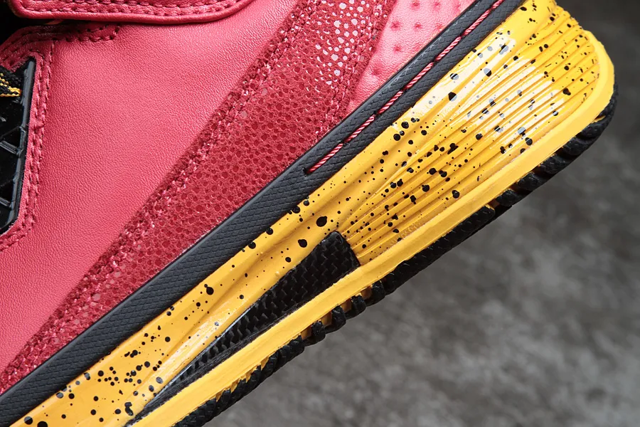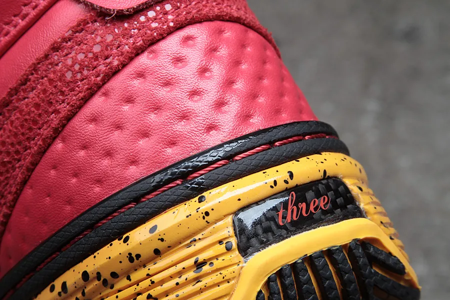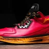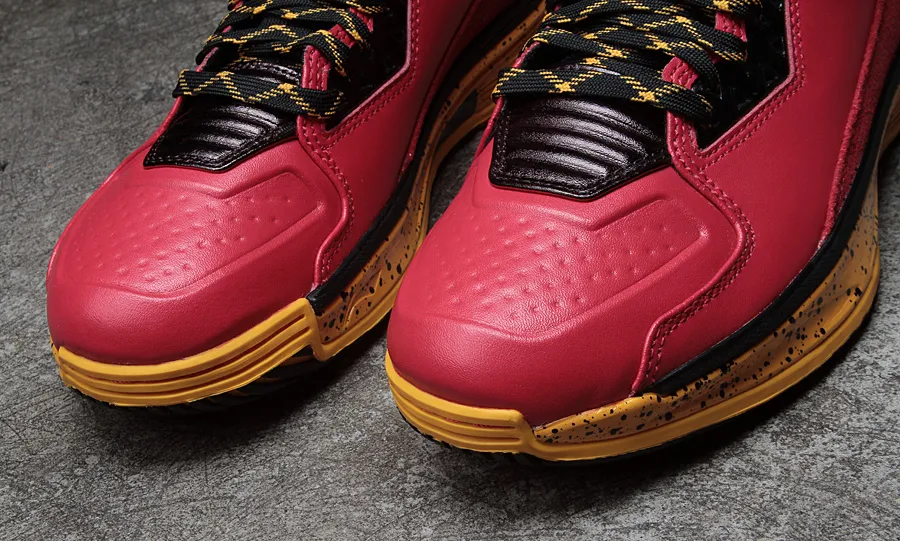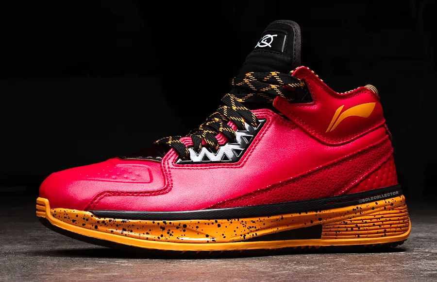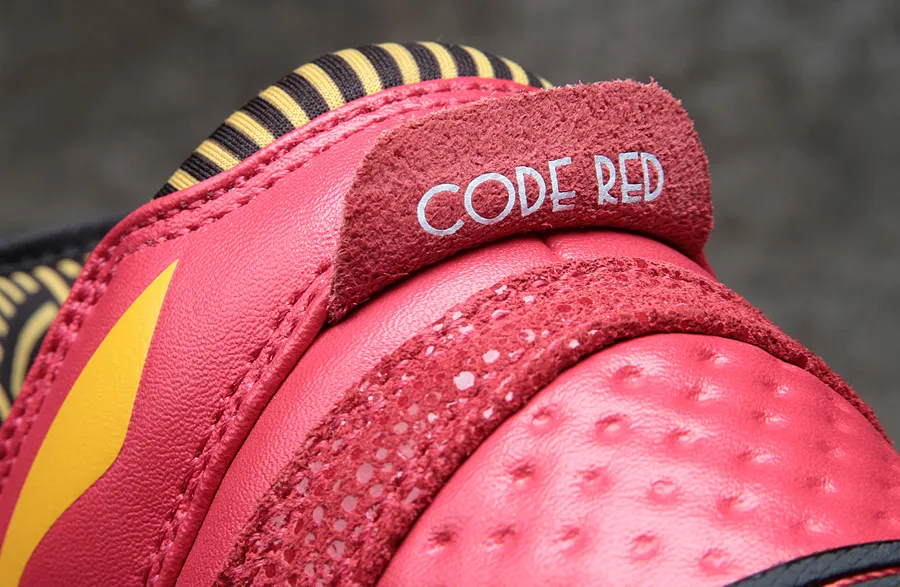 The Li-Ning Way of Wade 2 ‘Code Red’ is a bold colourway From Dwyane Wade’s second signature basketball shoe with Li-Ning, released in the 2013-14 season. This edition features a predominantly red leather upper with premium suede overlays, giving it a striking look that stands out on and off the court. The contrasting rubber sole includes speckled accents and a detailed outsole that often incorporates personal nods tied to Wade’s life and family, a signature touch in this line. The high-top design has a lace-up closure for secure fit and ankle support, and the combination of materials balances durability with comfort for basketball use. The Code Red colourway reflects Wade’s aggressive dynamic playing style with classic yet vibrant palette of red, black and yellow accents throughout.