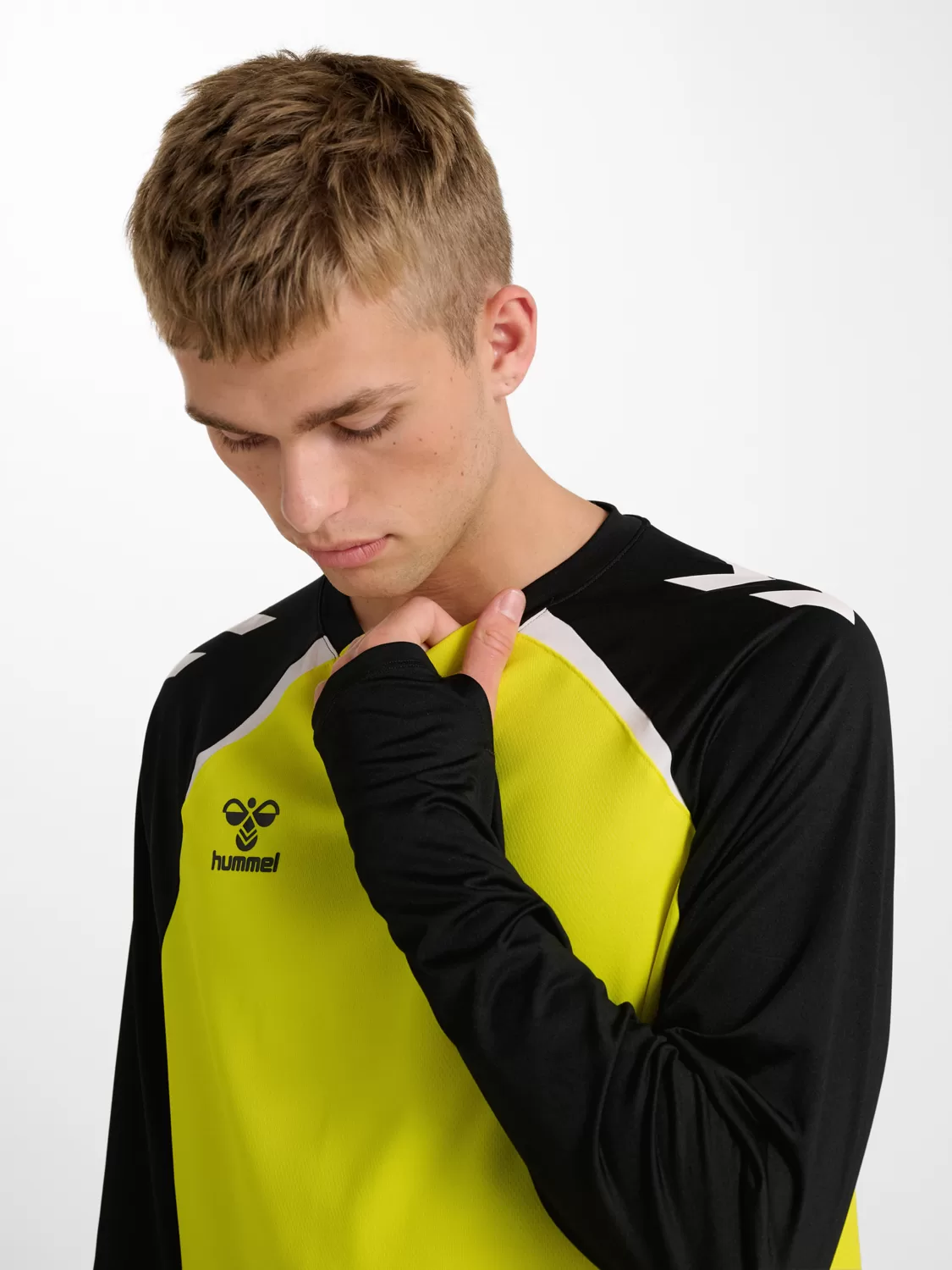 The hmlLEAD 2.0 CREW SWEAT features BEECOOL® technology for high breathability and quick drying. Designed in a regular fit, and includes thumbholes at the cuffs for extra warmth and a secure fit during movement. Chevrons on the shoulders and Hummel logo on the chest completes the look for this long sleeved sports jersey.