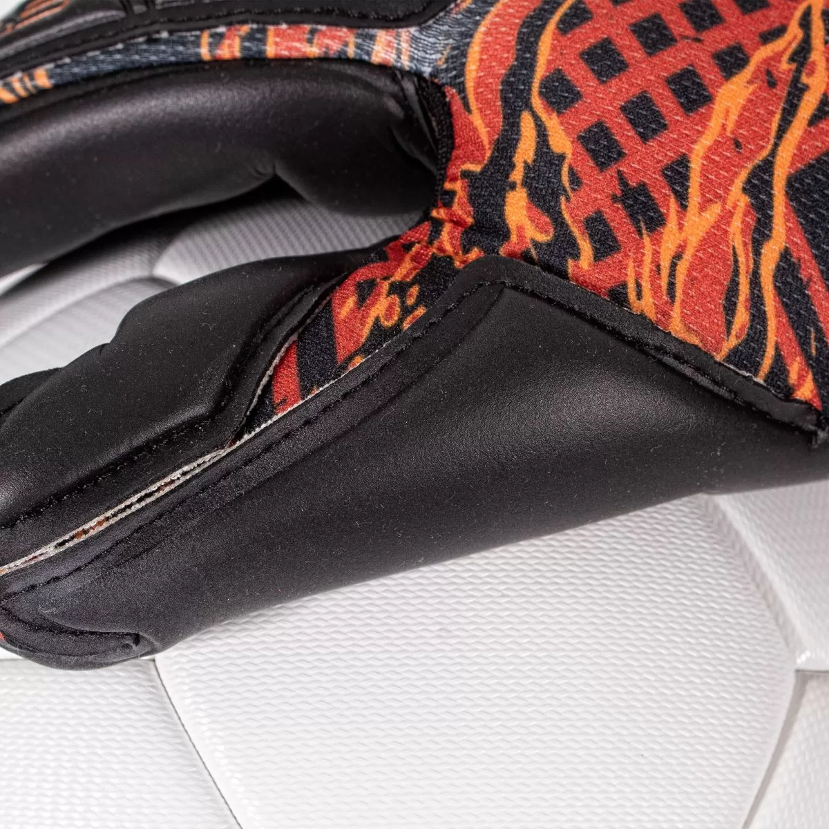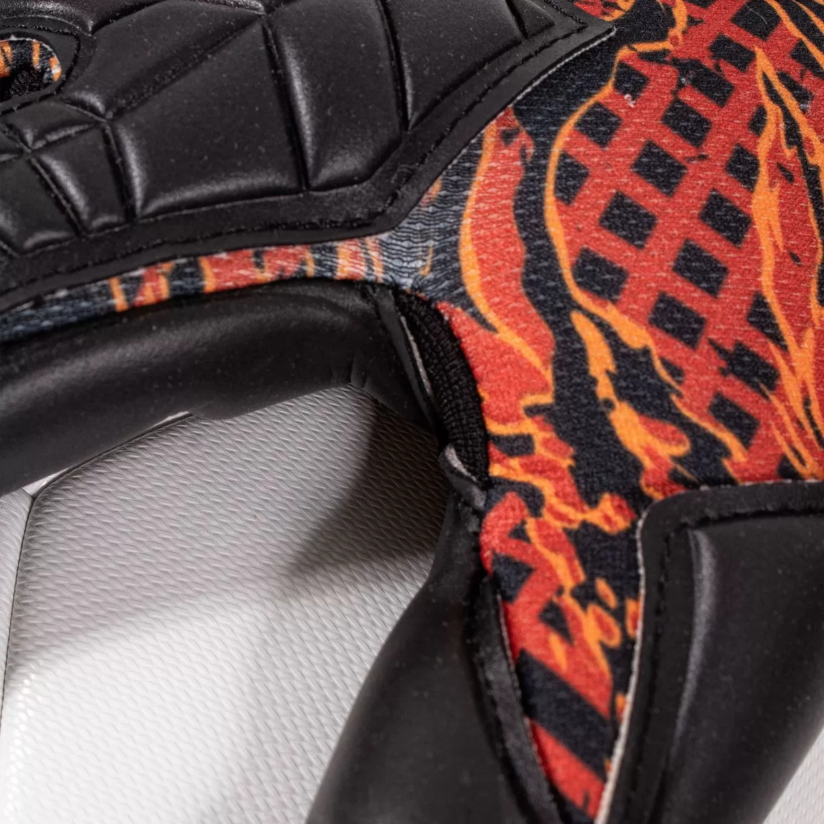 The Claw is a senior goalkeeper glove from Stanno with Hyper Foam. The Hyper Foam is characterised by its high absorption capacity, which greatly improves the grip. In dry weather, the goalkeeper does not need to wet the gloves during the match or training, while in wet weather the glove maintains its excellent grip. Hyper Foam also guarantees optimal wearing comfort and increases ball control thanks to its excellent impact reduction. The middle and ring finger are rolled over the fingertip for an even larger foam surface. This model is hybrid, with a combination of roll finger and flat hand negative fingers. The stitching is on the inside. The One Piece Fit design (OPF) also guarantees an optimal fit around the upper hand. The glove fits so snugly around the hand that the use of a wristband is optional. Therefore, the Claw is equipped with a detachable, elastic flat wristband (can be printed with e.g. your name).