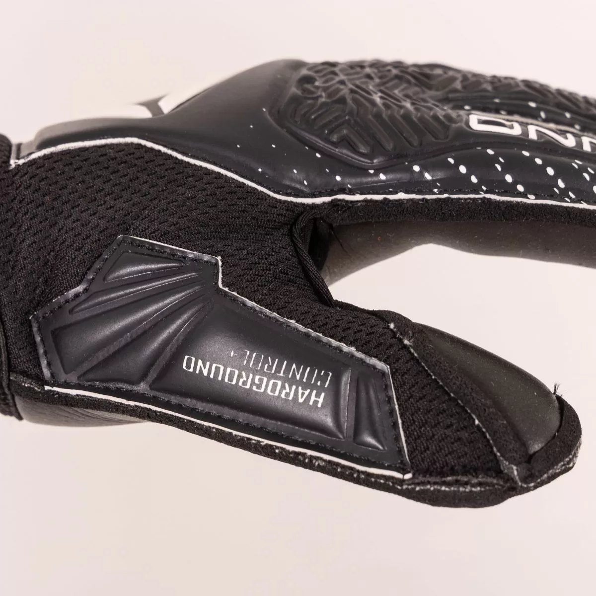 The Hardground Goalkeeper Gloves JR VI derive their name from the rubber debossing that reinforces the palm, thus extending the life of the gloves. This makes the goalkeeper gloves ideal for use on artificial turf and hard surfaces. These goalkeeper gloves for kids feature Soft Foam for reliable grip and excellent cushioning. The rollfinger model increases the foam surface, for better grip on the ball. The elastic wristband is perfect for printing with, for example, your name.