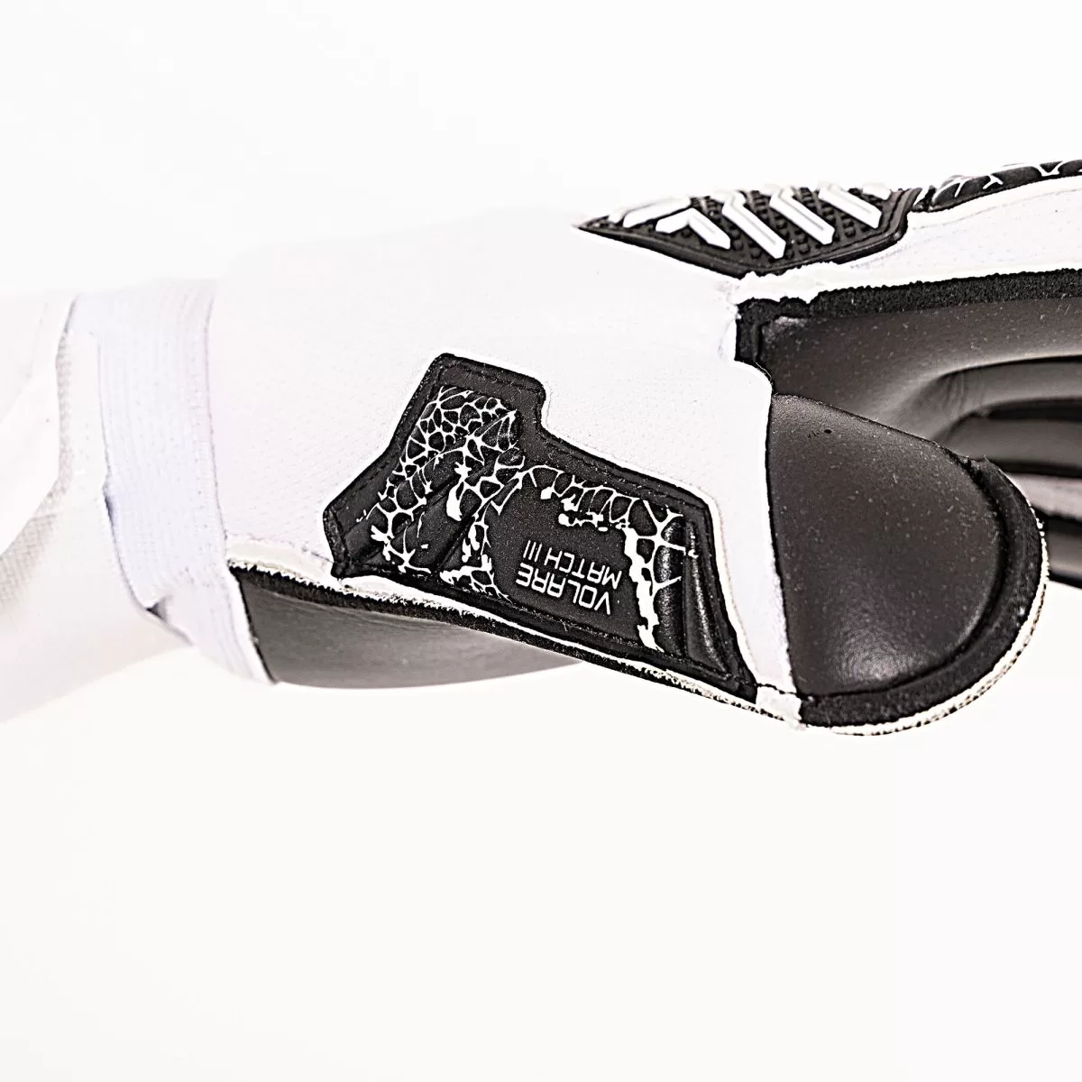 The Volare Match Goalkeeper Gloves III feature Soft Foam for a reliable grip and comfortable cushioning. The flat hand, negative stitching is tight around the fingers and provides enhanced ball control. The neoprene insert on the upper provides a perfect and flexible fit. On the fingers, the goalkeeper gloves have an elastic mesh insert for ventilation and optimal flexibility when catching, punching and throwing. The elastic wristband has a surface that is ideal for printing your name, for example.