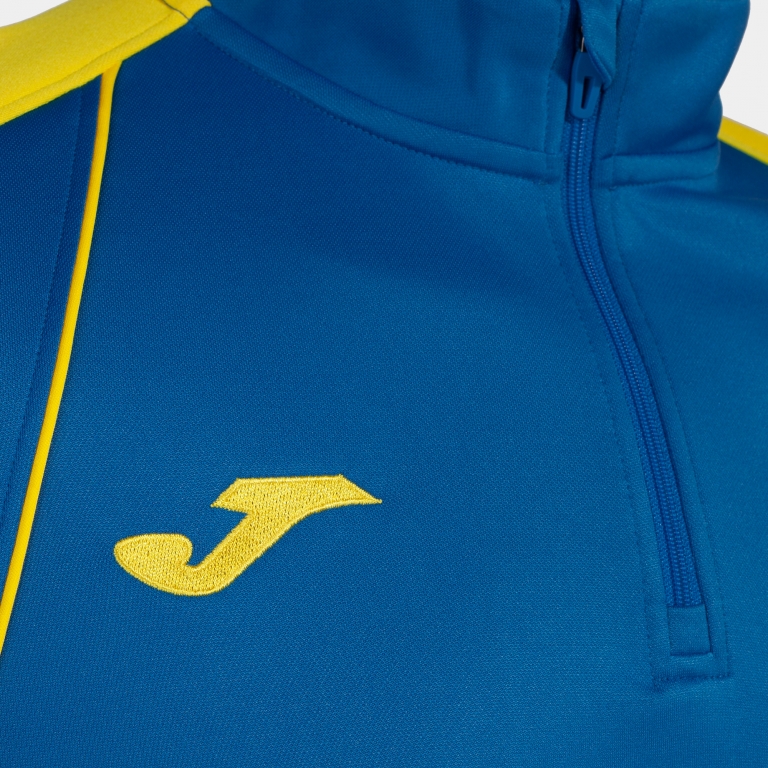 It is made of a soft and robust 100% Polyester fabric with a fleece interior which helps to keep warm when training at low temperatures. All this makes it a comfortable and warm Half Zip for any of your sports activities.