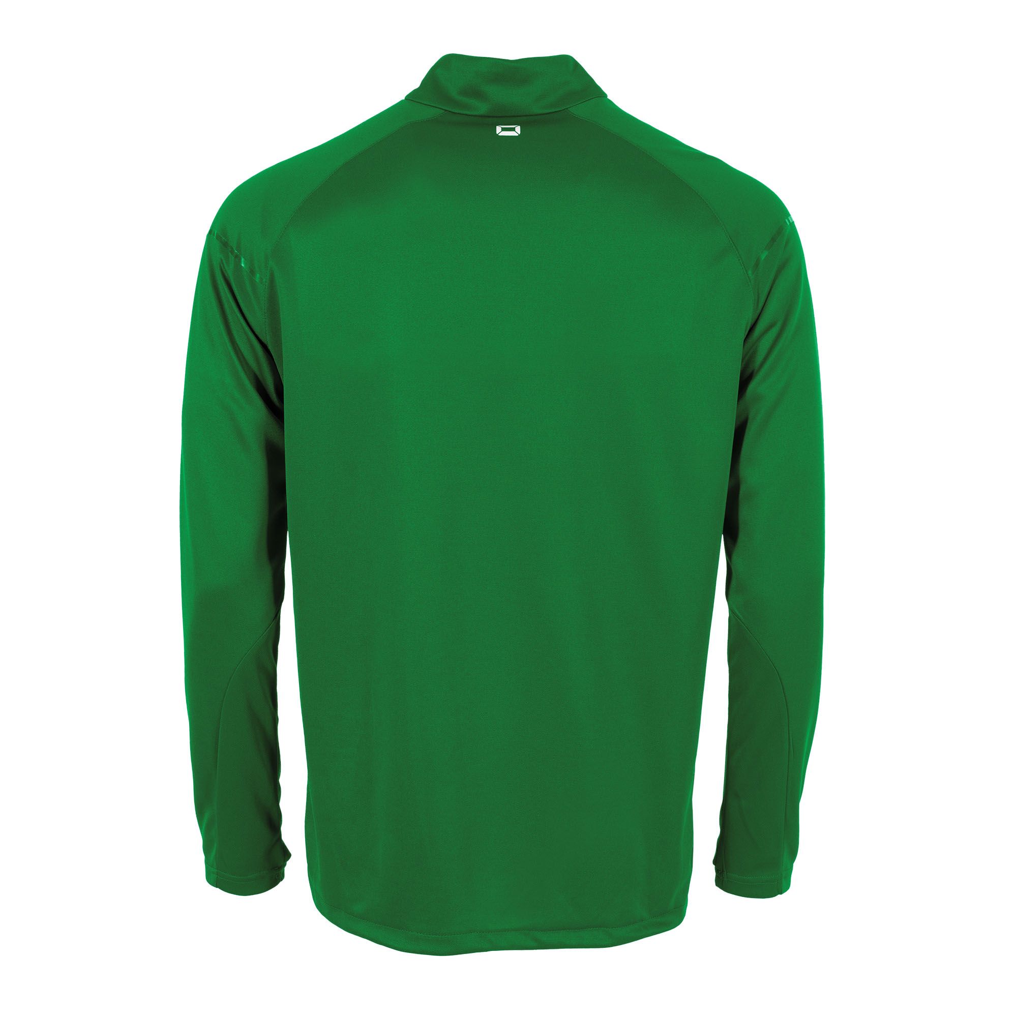 This quarter-zip sweater from Stanno is made from 100% recycled polyester. You wear this top before or after exercise or during your warm-up and cool down so that your muscles stay warm. The top has mesh panels, and a raglan sleeve insert ensures that you have sufficient freedom of movement. Not only is the fabric made from recycled material, but the quarter zippers on the front are also made from recycled SBS. Also nice about this sweater are the thumb holes for a comfortable feeling and the elastic cuffs. The printed Stanno logos complete this top. The top is suitable for team sports and presentation.