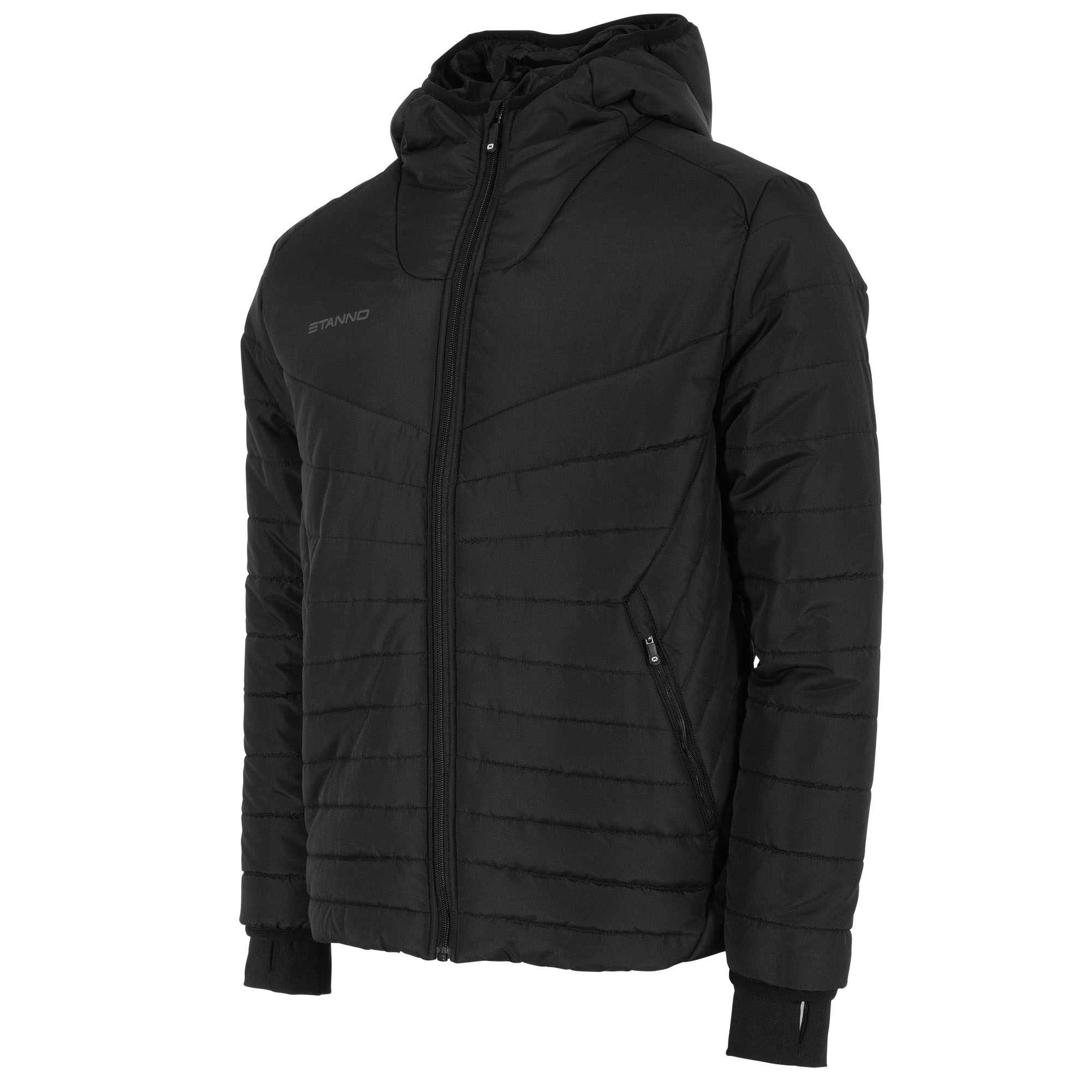 The Stanno Prime Puffer Jacket II feels nice and warm, but at the same time is lightweight. This stylish jacket is made of 100% polyamide. The Stanno Prime Puffer Jacket has two pockets on the front with high-quality SBS zippers. The jacket has a hood with elastic binding. Logos can be found on the right chest and hood, and on the back is a printed panel.