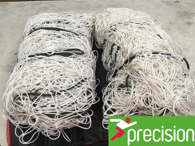 Club Soccer goal NETS in White with high grade tensile 2.5mm weatherproof Knotted polypropylene with 120mm x 120mm square mesh. These club soccer nets are built to last, even when exposed to all weather conditions. Can be used with straight back and run back goals with stanchions up to 1m. COMES as a Pair (2), in mesh carry bag. ask for BULK pricing