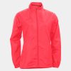 This women’s jacket is made out of 100% Polyester and features a hood, protection at the collar for the zip, and zipper side pockets.