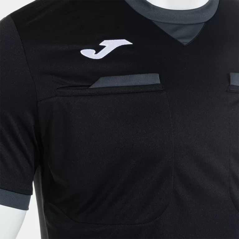Designed for soccer and futsal, this shirt is special for referees, as it incorporates two front pockets with Velcro closure to store cards. Features a round neckline in base fabric. Made with lightweight, resistant, and easy-care fabric. It has breathable MICRO-MESH SYSTEM panels located on the sides to help evacuate sweat and regulate moisture, keeping the body cool during sports practice. These panels are elastic to improve freedom of movement. Embroidered Joma logo.