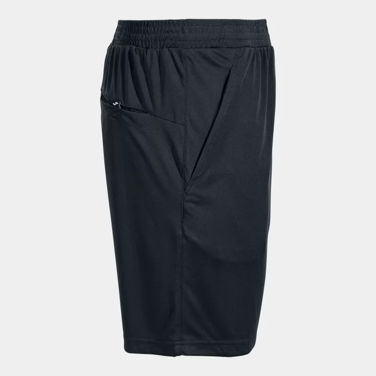 The REFEREE SHORT is a sports product designed for both men and children, ideal for playing soccer and futsal. It features an adjustable elastic waistband with an inner drawstring, allowing it to be adjusted to different sizes and ensuring an optimal fit during the game. Additionally, it includes side pockets and a back pocket with a hook-and-loop closure, providing secure storage options for small personal items.