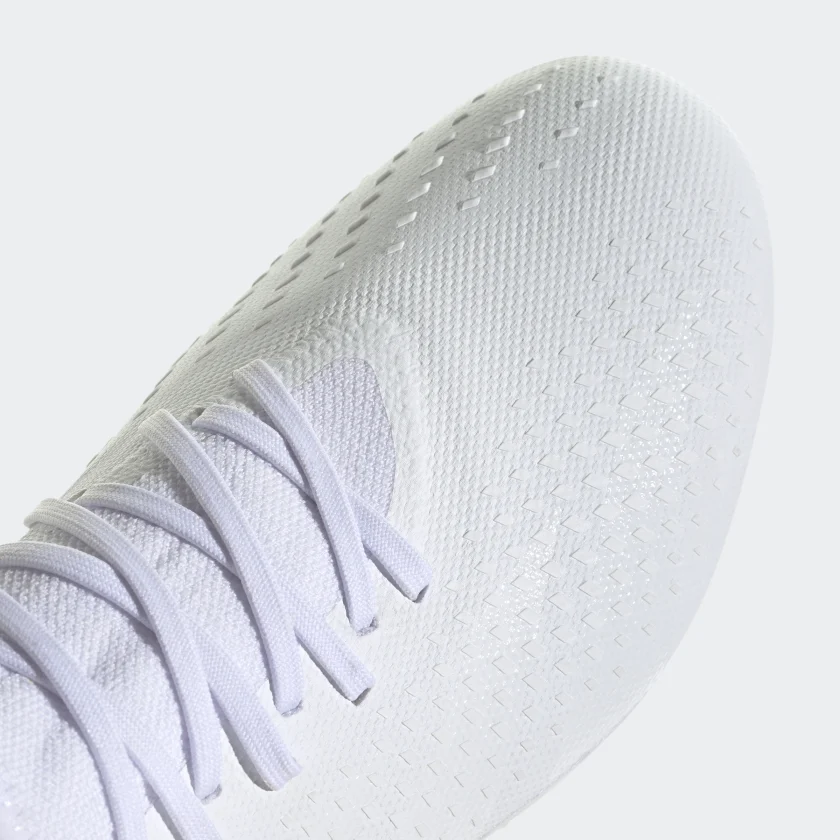 Control + accuracy = confidence. When the goal’s in your sights, target perfection with adidas Predator Accuracy. The soft, coated textile upper on these soccer cleats includes High Definition Texture across its strike zone. A mixture of debossed elements and raised print, it’s there to help you nail every pass and shot. Underneath, a specialist outsole keeps you in boss mode on firm ground.