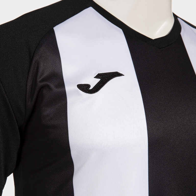 100% Polyester short sleeve jersey features a V-neck in the base fabric in semi fitted style. The raglan sleeves contribute to freedom of movement. Made with lightweight, comfortable, and abrasion-resistant fabric. All of this is designed to offer maximum durability. In the sides and underarms, areas where sweat accumulates the most, the Micro-Mesh System technology has been included in high perspiration areas, which helps regulate moisture and maintain a constant body temperature. No seams on the sides with the Frontal design having sublimated vertical contrast stripes. Embroidered Joma logo.