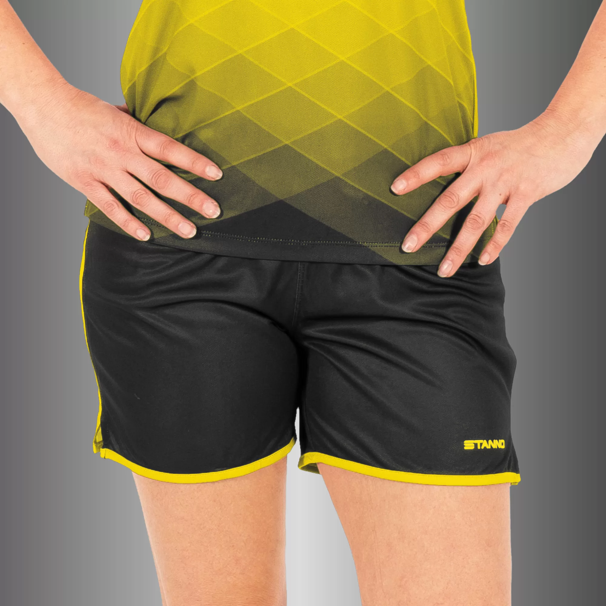 The Altius Shorts Ladies is fully sublimated and made out of 100% recycled polyester with a ClimaTec finish. The shorts have an elastic waistband with a drawstring. The short has a ladies fit and a side split provides extra freedom of movement. The mesh structure on the inside and sides ensures optimal sweat drainage. A Stanno logo can be found on the left leg.