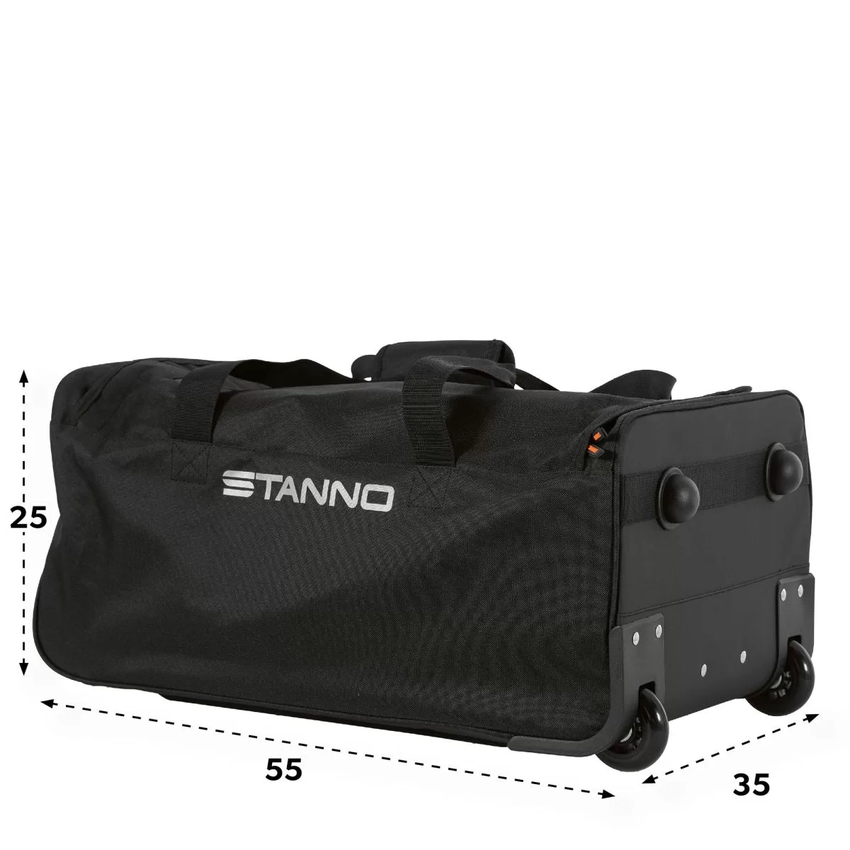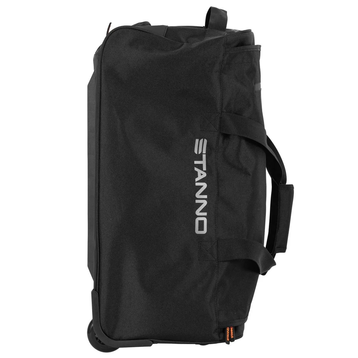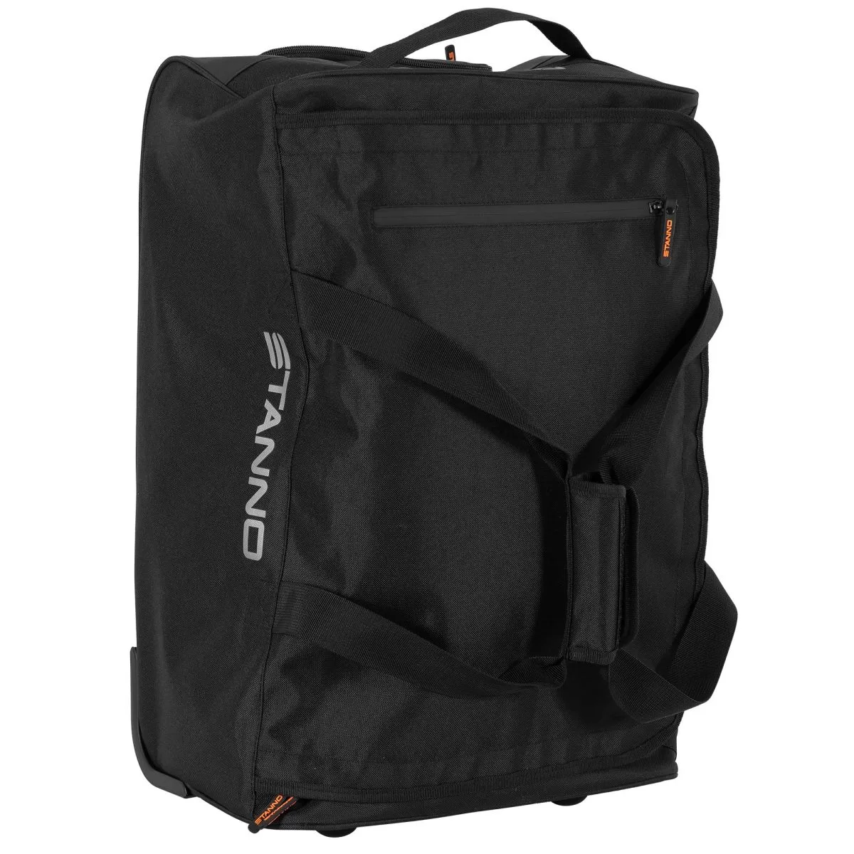 The Stanno Premium Medium Trolley Bag is a spacious and versatile travel and sports bag designed for convenience and durability. It features a U-shaped zipper that provides easy access to the main compartment, along with an internal zip pocket for secure storage of smaller essentials. Built with an extendable handle and smooth-rolling wheels, it functions like a suitcase, while the two sturdy straps allow it to be carried by hand when needed. Finished with reflective details for added visibility, this black trolley bag combines practicality with style. Measuring 55 x 35 x 25 cm (H x W x D), it is a reliable choice for men, women, and youth, perfect for sports, travel, or everyday use.
