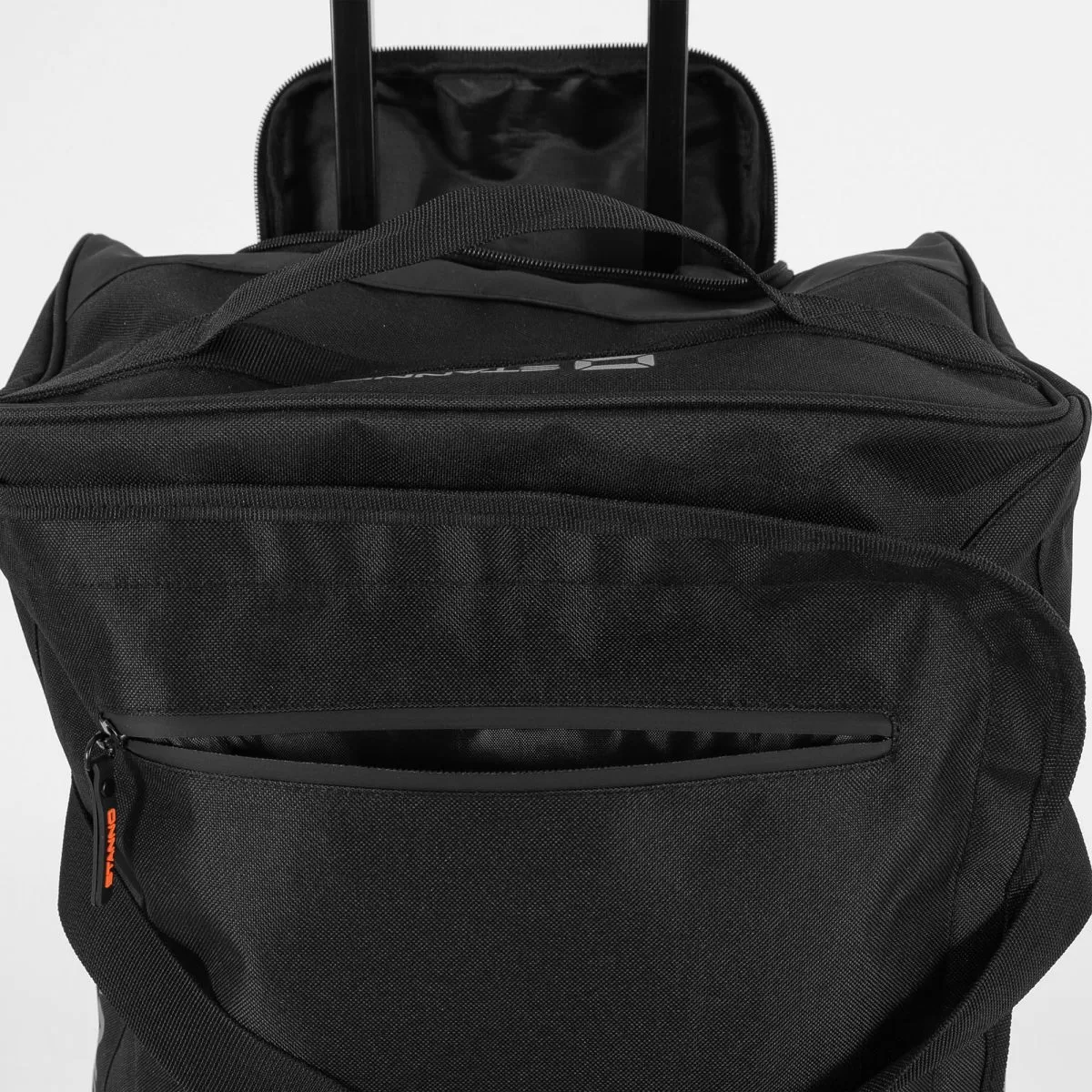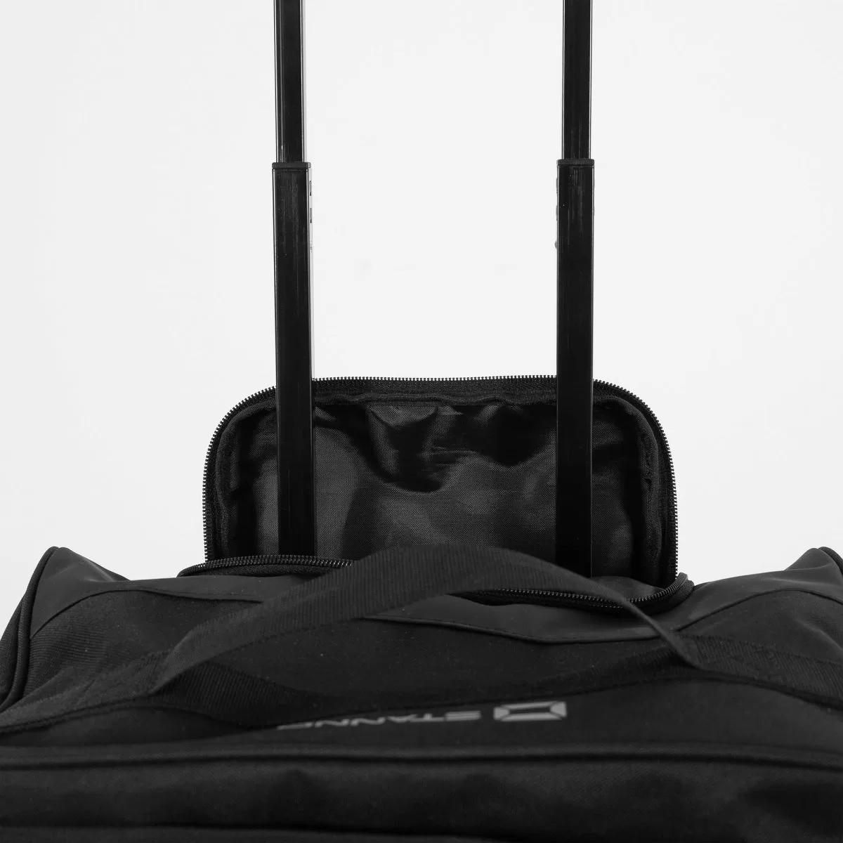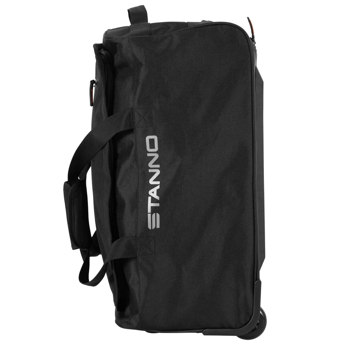 The Stanno Premium Medium Trolley Bag is a spacious and versatile travel and sports bag designed for convenience and durability. It features a U-shaped zipper that provides easy access to the main compartment, along with an internal zip pocket for secure storage of smaller essentials. Built with an extendable handle and smooth-rolling wheels, it functions like a suitcase, while the two sturdy straps allow it to be carried by hand when needed. Finished with reflective details for added visibility, this black trolley bag combines practicality with style. Measuring 55 x 35 x 25 cm (H x W x D), it is a reliable choice for men, women, and youth, perfect for sports, travel, or everyday use.