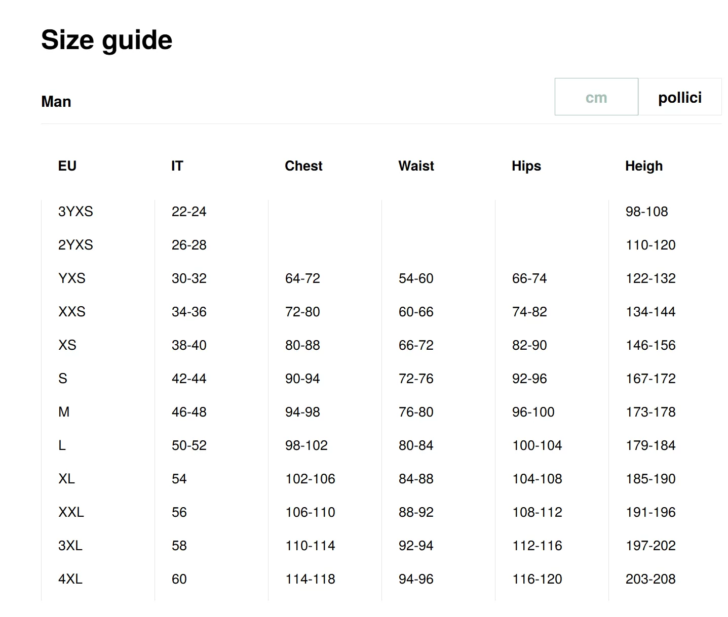 FOR ERREA Gear – We recommend sizing up; for example, want a USA size Adult Small? Order Adult Medium.