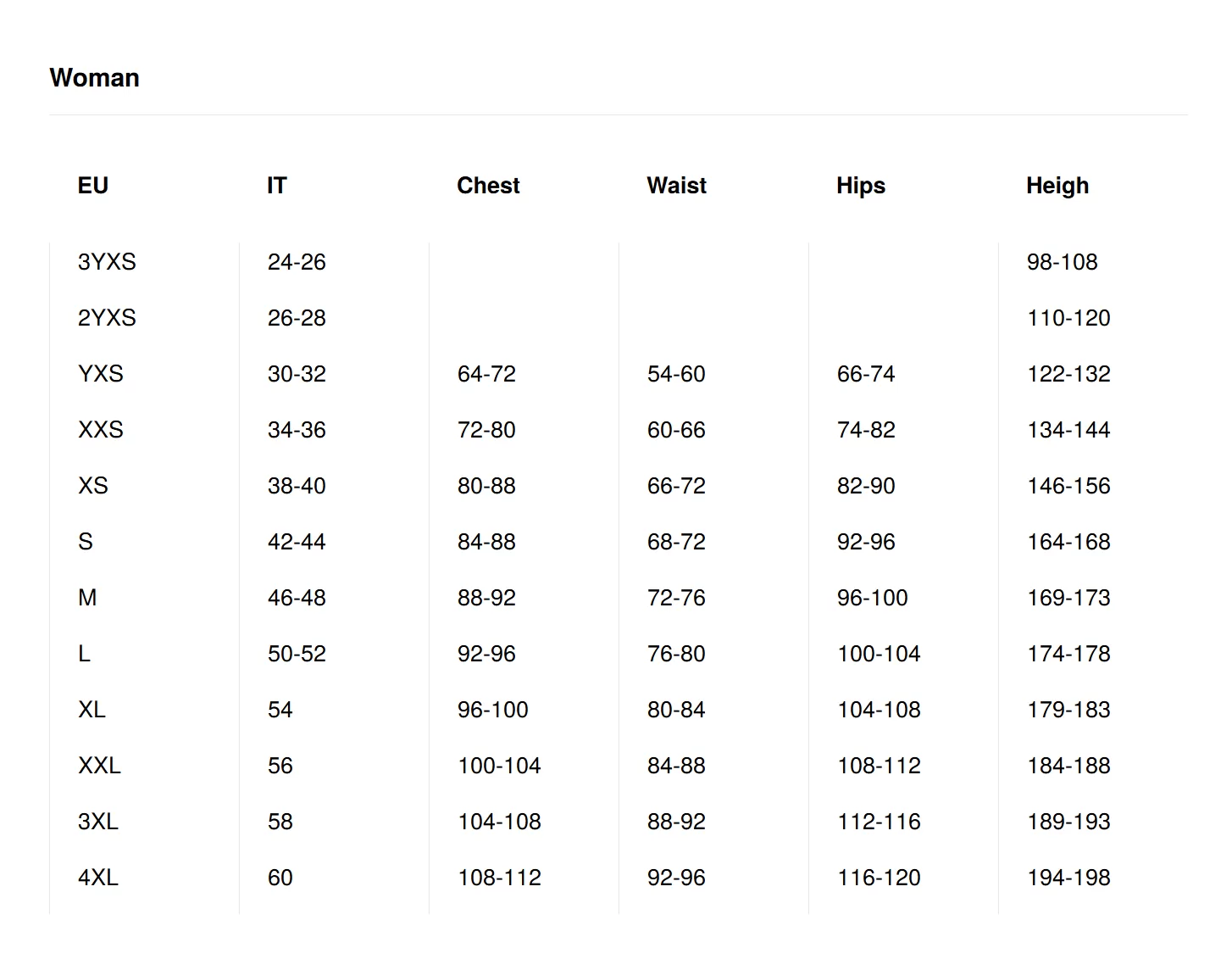 FOR ERREA Gear – We recommend sizing up; for example, want a USA size Adult Small? order Adult Medium.